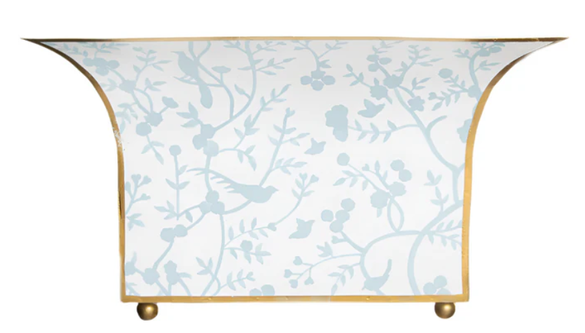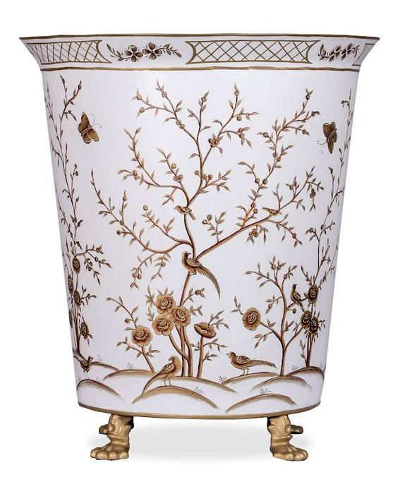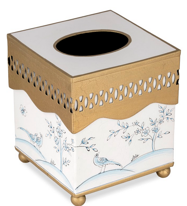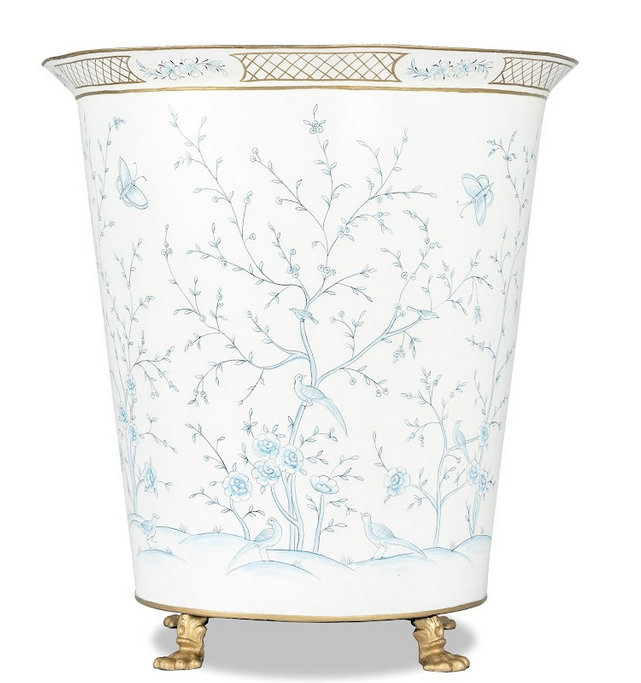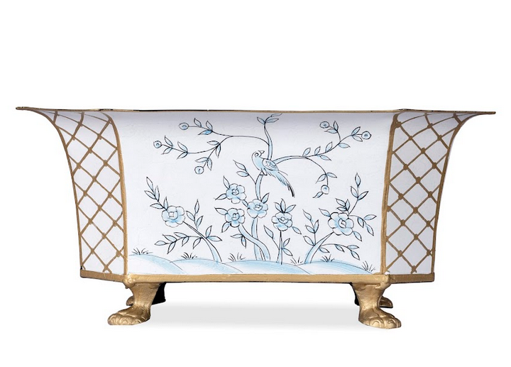 The flared planters in white and blue, chinoiserie wastebasket and tissue box in blue and ivory and chinoiserie hand painted panels in ivory and blue are some of my favorites but I honestly love absolutely everything! Chinoiserie will forever be my style and your store is perfection!