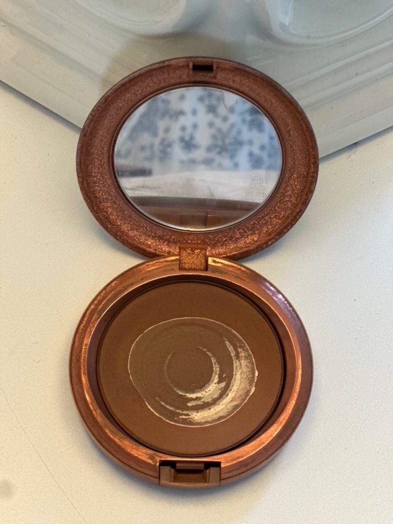 FAVORITE BRONZER Hands down is this Mac bronzer. I know this picture shows a very (lovingly) used product but this is about 8 months old and still going! Lordy knows how many times this has been dropped, didn’t crack once! I wear a tinted moisturizer and concealer where needed then use this bronzer and it provides a very natural soft glow. A  definite fan,  this might by my fifth one! I use the color- matte light golden. Click here