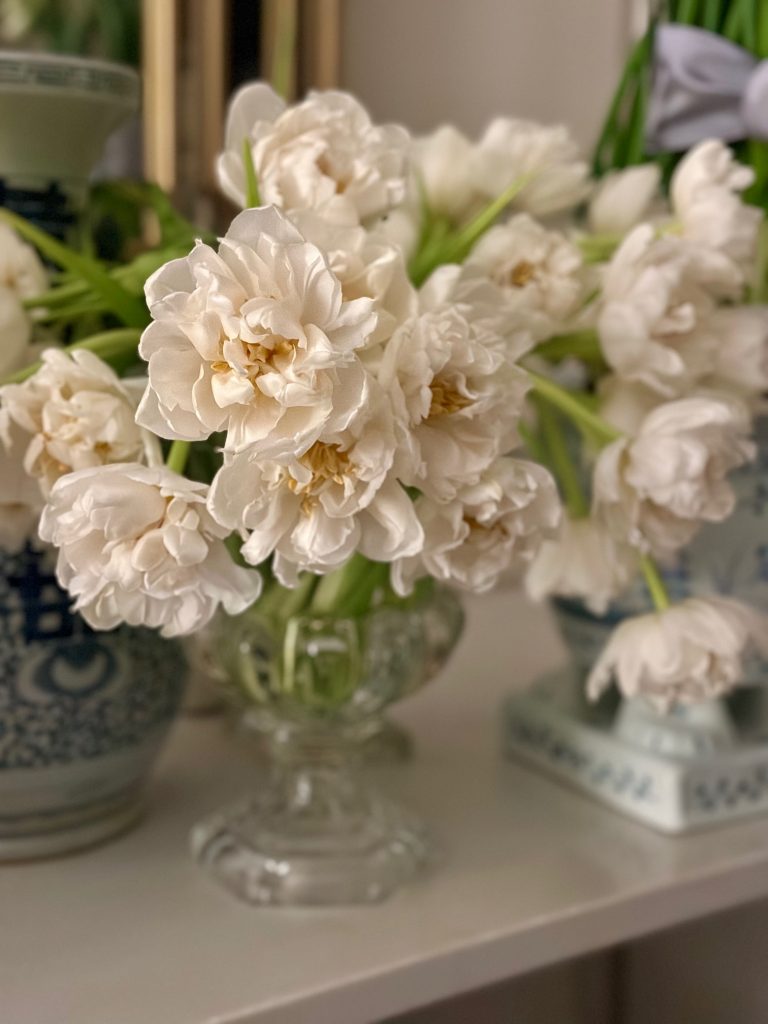 FAVORITE WAY TO FRESHEN UP A SPACE Easy peasy! Fresh flowers, always! I couldn’t live without flowers..quite literally. I have them in some form in my home weekly. Whether its a splurge at my favorite floral shop or a small bunch of tulips from the market..have to have them! They just make me happy and add instant elegance and beauty wherever they are used. And don’t forget to be creative when looking for what to put them in. Look beyond vases and jars, even a simple drinking glass, a silver mint julep can make a beautiful small arrangement for an end table or nightstand.