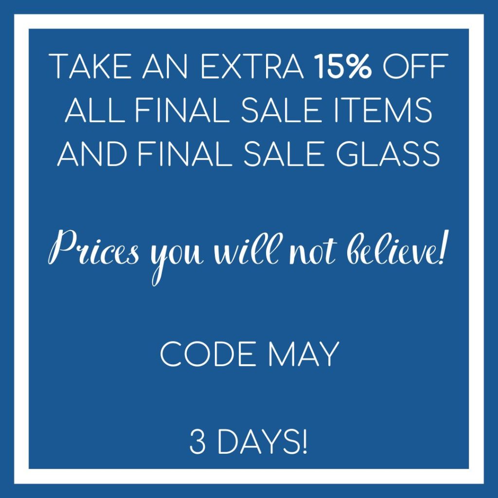 SECOND DAY OF OUR EXTRA 15% OFF FINAL SALE AND FINAL SALE GLASS