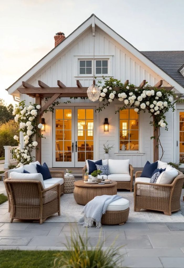 I have gathered some beautiful outdoor spaces, and tried to vary styles/colors, etc…so hopefully there’s something for everyone. Maybe this will motivate you to get your own space in alfresco entertaining shape, I know its definitely inspiring me. So just imagine the patio genie was going to transform the space you walk out to everyday, which do you see yourself relaxing and entertaining in? Ready to put your thinking caps on? Time to vote for your three favorites….