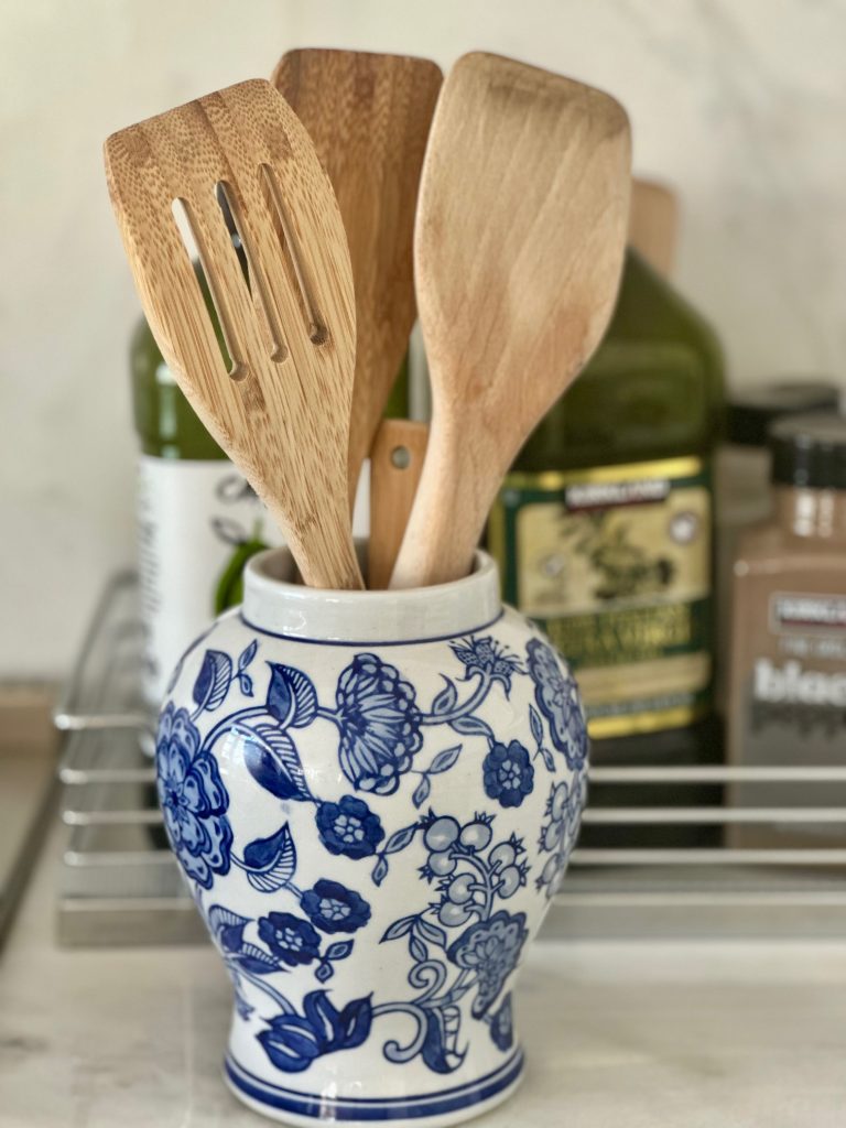 ITEM 19 My personal favorite flat top is this beautiful cherry blossom jar. I like that there is a lot of white space” so it works beautifully with other collections of blue and white.