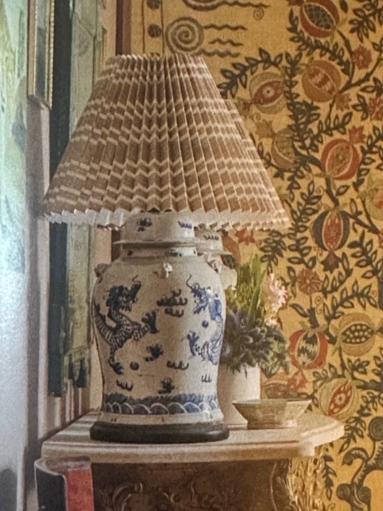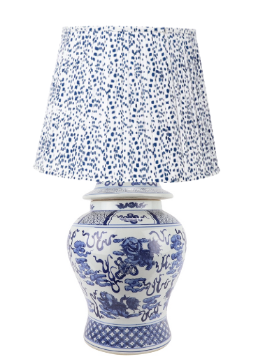 (We paired it with our blue dot pleated lampshade, and with any purchase of this ginger jar the shade is $90.00)