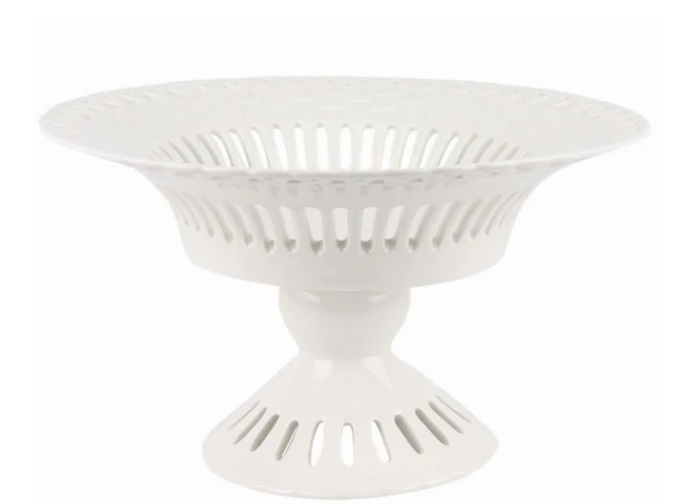 ITEM 8 This fabulous white pierced footed bowl is a personal fave. I have used it in many ways, to hold seasonal decor, for florals and for candies on my coffee table.