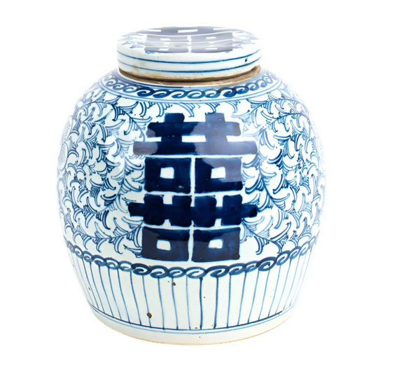 ITEM 20 Our beautiful classic double happiness flat top is a beauty whether you are adding to an existing vignette or staring a new one! The double happiness is such an iconic and timeless pattern.