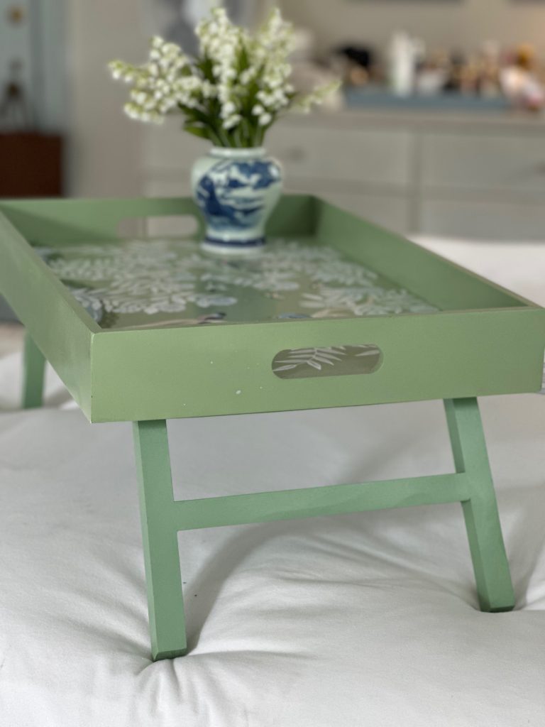 Got in our beautiful new wood chinoiserie breakfast trays- could not love them more. The other day used mind, had coffee and toast in bed (never happens) and it was a treat!