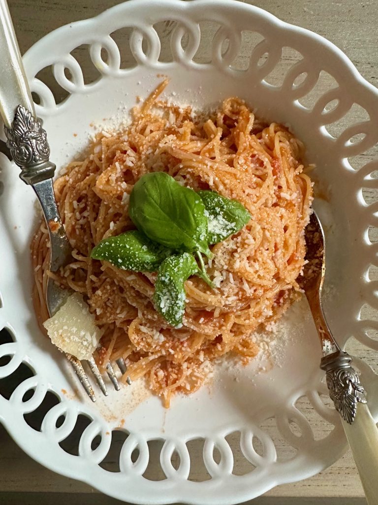 Sometimes you just need a bowl of pasta, I made an excellent homemade marinara sauce the other day, haven’t had this in ages, it was worth the calories!