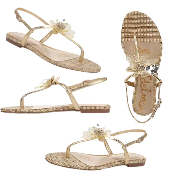 I also wanted to share these darling strappy flats in gold, love the flower detail. These look great with capris, skirts and sundresses. Comfy and so chic, and goes with every color! I love that the gold elevates the shoe so the style is casual enough for day but you can dress it up for evening too.