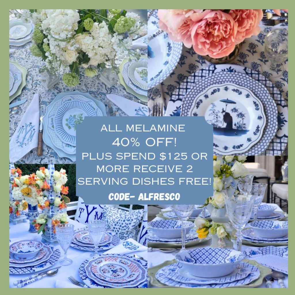 OUR AMAZING MELAMINE SALE IS ON- 40% OFF ENTIRE COLLECTION.