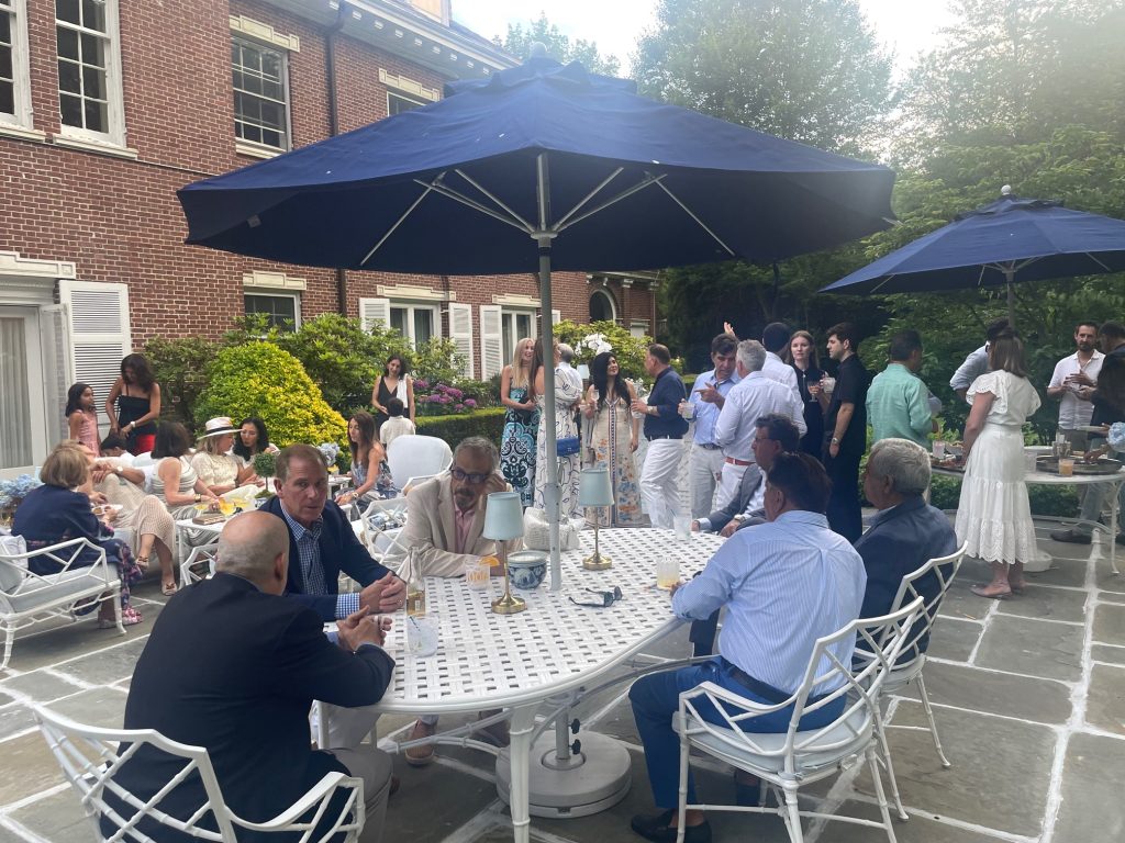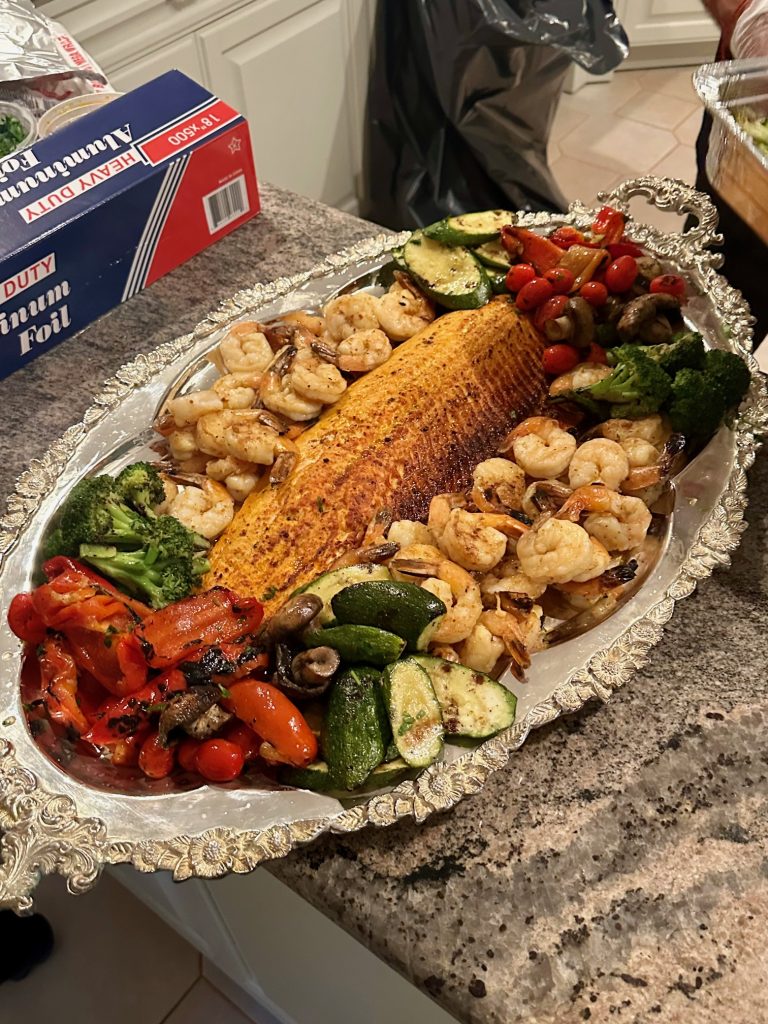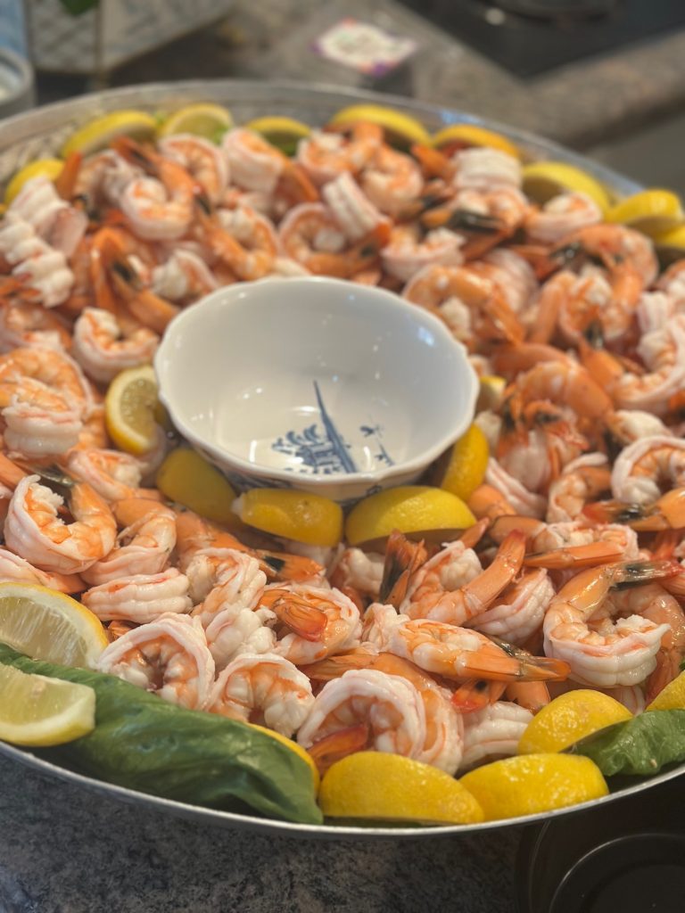 Here is part two of my husbands 65th party. We got lucky as they were calling for rain but it ended up being a nice sunny day (a little hot) so last minute we chose to have cocktails outside and continue with dinner inside. It worked out really well. We were about 45 people, close friends and family and it was a really enjoyable evening. I always wish I got more pictures, but this is the best I could do (some from friends/family). We had an open bar and a huge antipasta, an enormous shrimp cocktail and a big tray of sushi to nibble on until dinner was served.