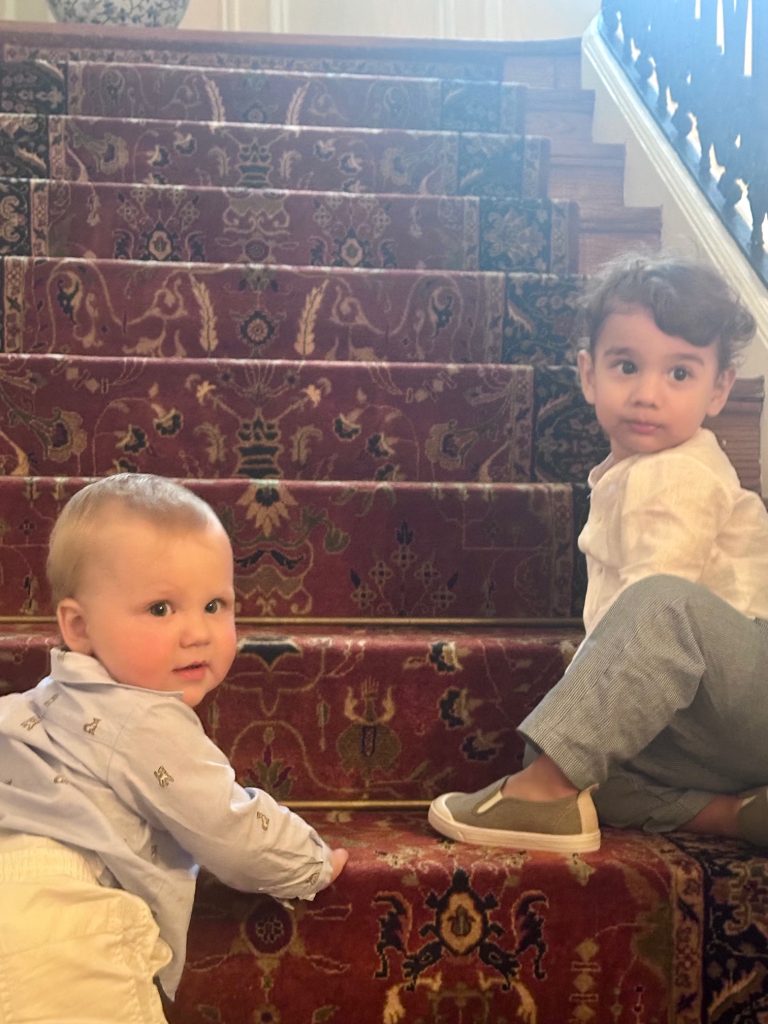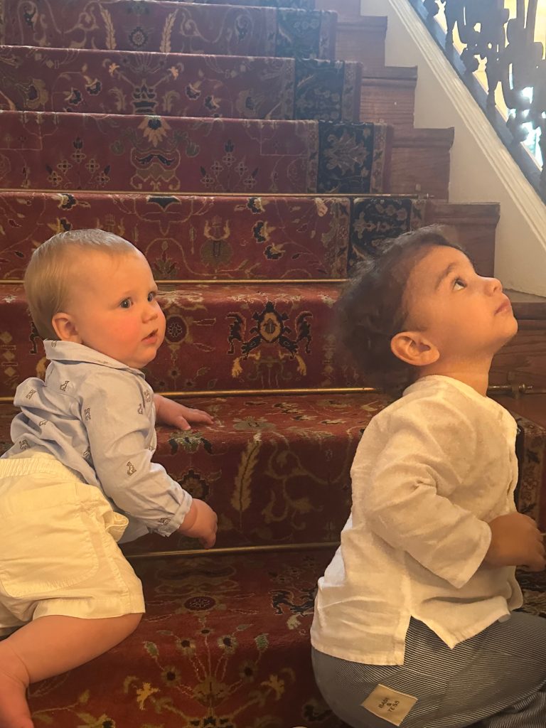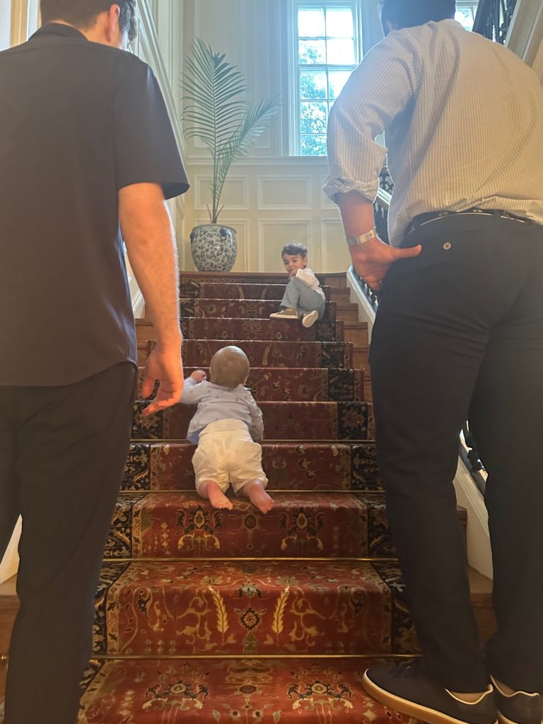 And then he started the “stairs game” thankfully the “dads” were close by!