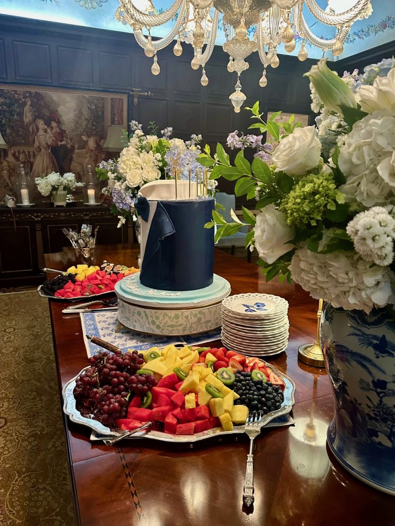 For dinner we catered from the best Persian restaurant and had a huge assortment of grilled meats, fish, shrimp, assorted rices and salads..it was so good! If you have not had Persian food, you are missing out. Then we celebrated with a fabulous custom cake from bakery here Sugar Rush Bakery here on Long Island and two big trays of fresh fruit. Overall, it was a wonderfully successful night and I realized I had not lost my touch though I had my doubts leading up to the weekend! OK, here are highlights from the second half…..