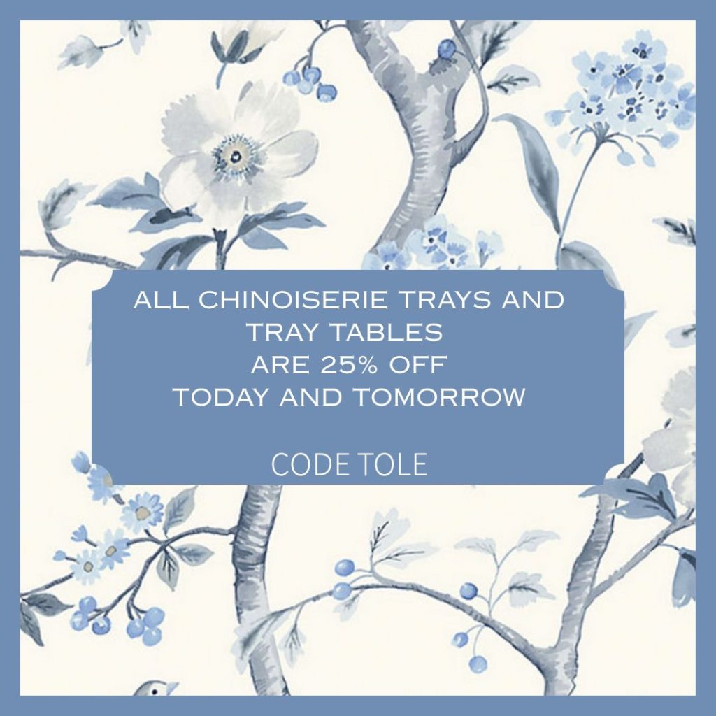 Today is the second and last day to take advantage of 25% off all chinoiserie trays and tray tables! We have so many beautiful ones that were recently restocked and this is a fabulous time to get one that you may have had your eye on!