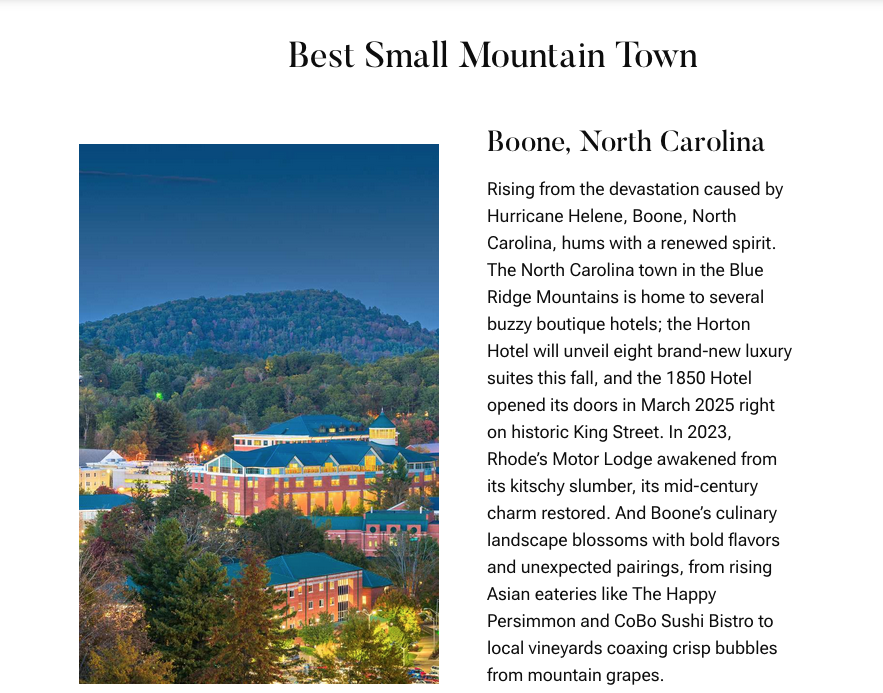 Boone, and the surrounding areas, are great places to go and visit. Lots of summer people and second, and some third, home people live there. It changed alot after Covid with people wanting to get out of the cities.