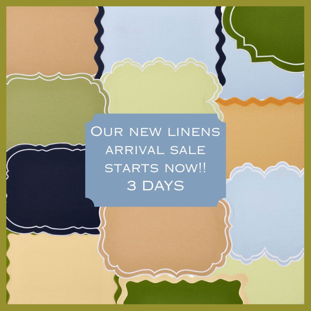 Hi there! I haven’t’ been this excited over an arrival sale in a long time. We just got in the most fabulous collection of linens in a bunch of amazing colors and assorted shapes to elevate your dining table. Whether blue and white for year round entertaining or the gorgeous fall colors we have included, these are guaranteed to be the perfect starting point on creating a beautiful table.