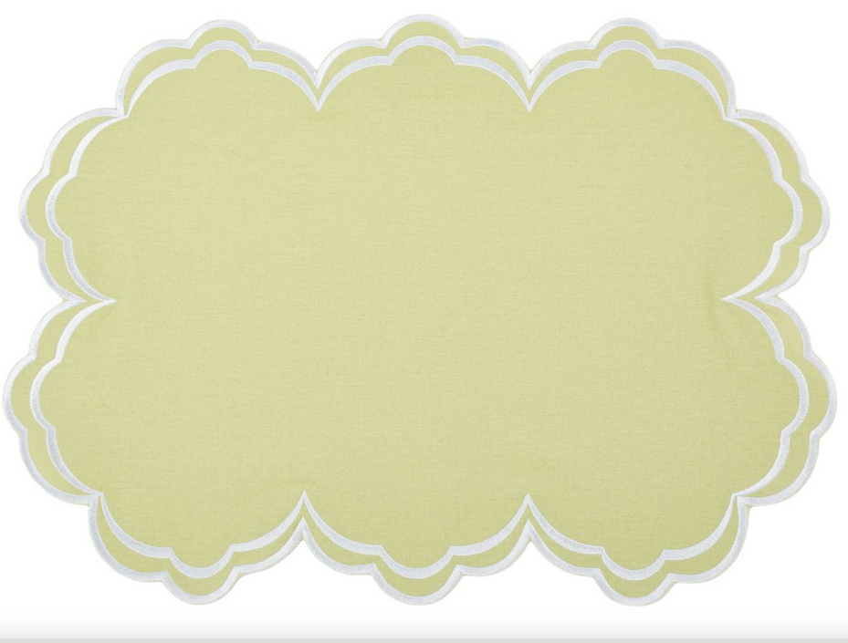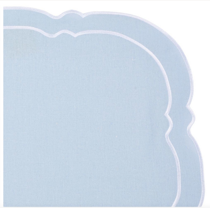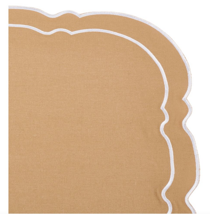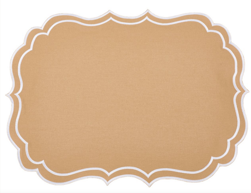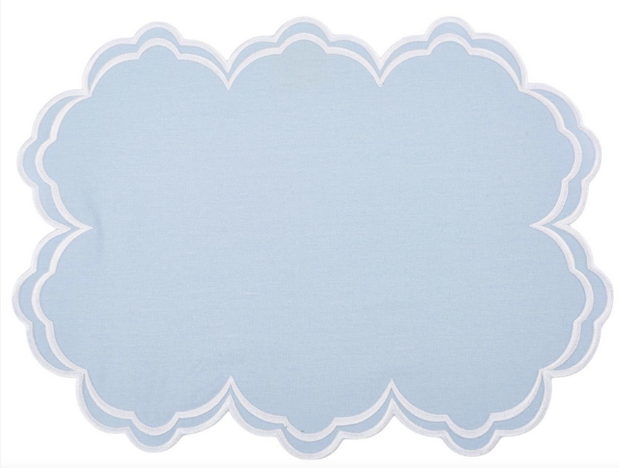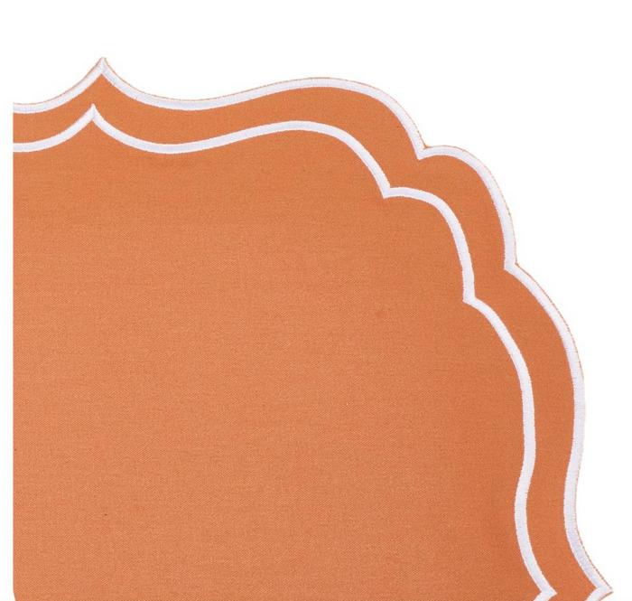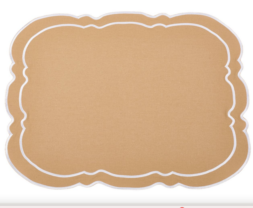 ITEM 3 Double scalloped elegant place mats and napkins. A stunning shape that will elevate any table!