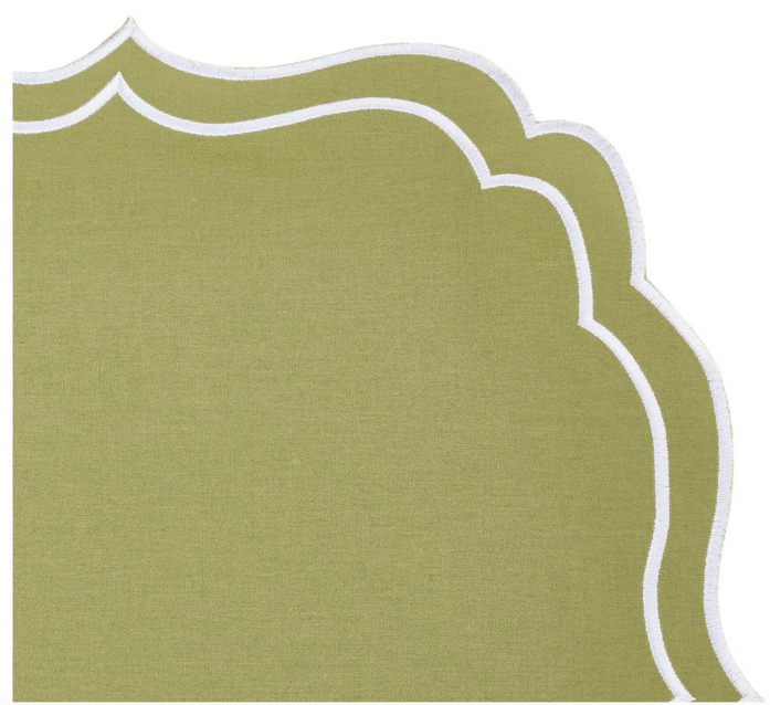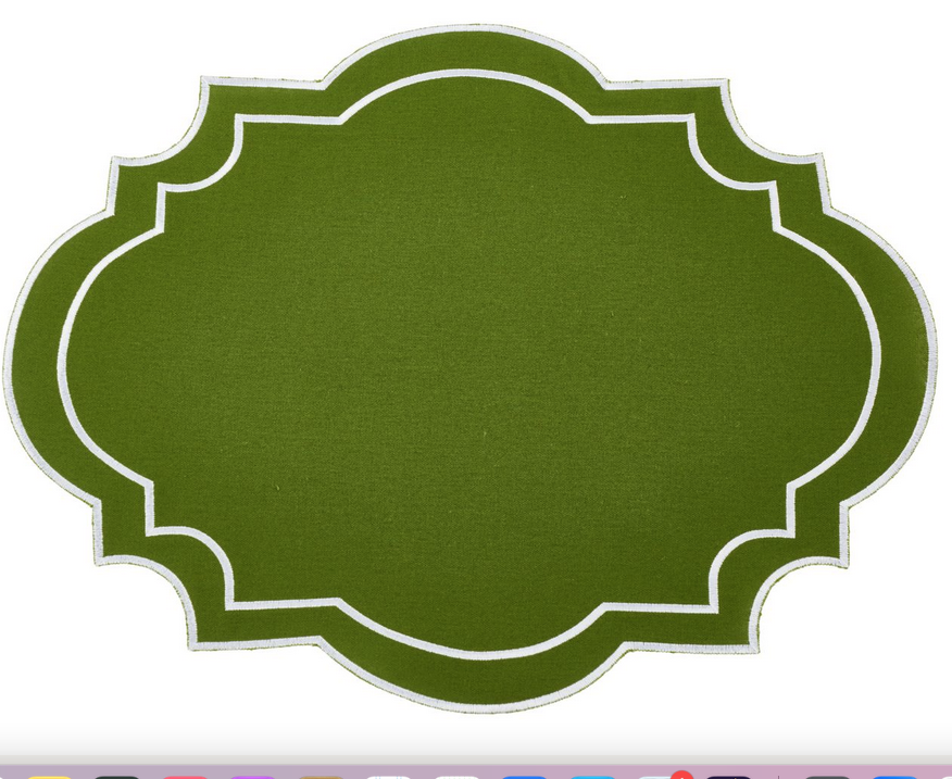 ITEM 5 Our final new style is a scalloped rectangular offered in three elegant colorways. A lovely addition to any table.