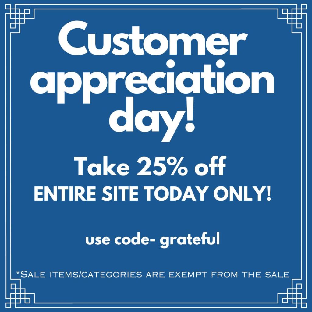 OUR CUSTOMER APPRECIATION DAY IS TODAY! 25% OFF SITE WIDE!