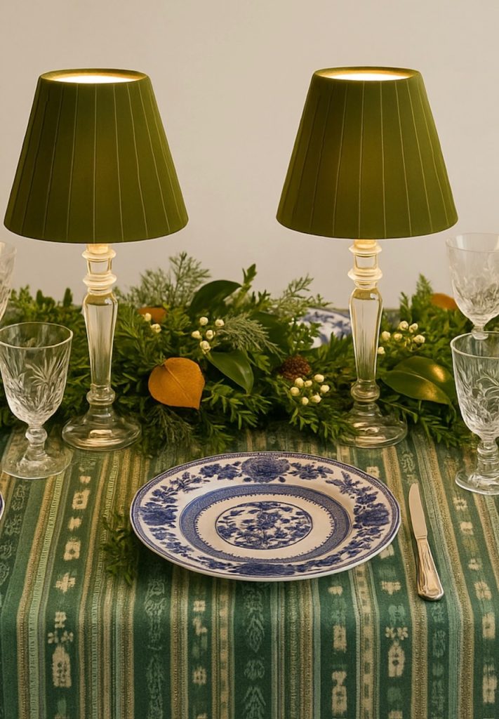 1 OUR NEW CRYSTAL MINI LAMPS! Everyone was very excited about these new upcoming lamps. These fabulous rechargeable crystal beauties are just what you need as the finishing touch for your holiday table. These have two shade options- a navy or mossy green pleated velvet shade. I just love these so much and cannot wait to set a table with them!