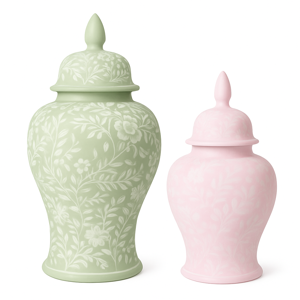 We will get these fabulous tole ginger jars in a few colors/styles in 2 sizes, this will be a beautiful spring collection (some minor modifications are being made but this is the overall concept)