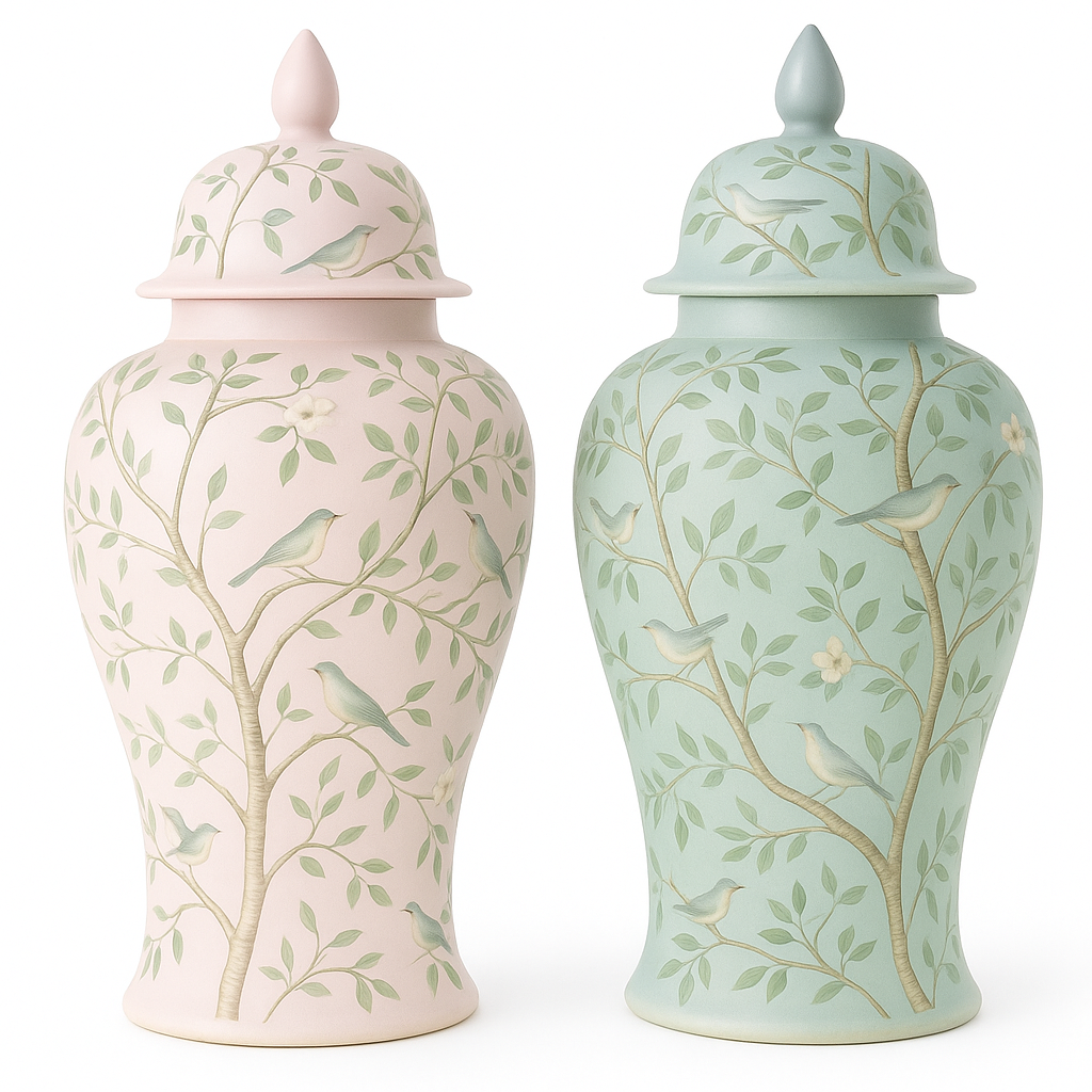 1 SNEAK PEEK INTO SPRING With the holidays just a few weeks away, for us,  its a look ahead into spring. Because we now sell wholesale, we have to get our collections ready earlier than we typically would. So we will get our spring goods in later Jan/early Feb. Always fun to see and share whats coming down the pike. You are always the first and only group to see! These wonderful new pagoda wastepaper baskets will be offered in four colors, and love the new tole jars!