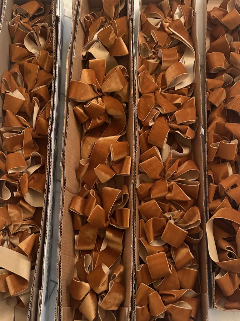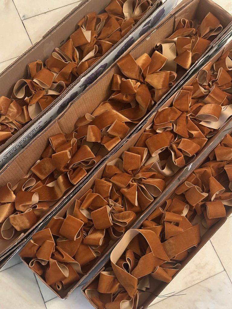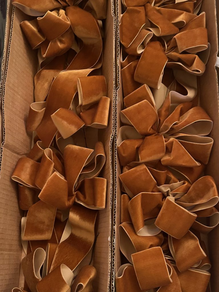 5 VELVET BOWS Never understate what 25 or so velvet bows can do to a tree! Because I have embraced the darker woods/moodier vibe that this house is that we are currently in, I decided to add some gorgeous chestnut/rusty toned velvet bows to my tree. They really enhanced everything and were the perfect finishing touch!  I had a local florist make the bows (I provided the ribbon). I cannot make a bow to save my life so this was a godsend!