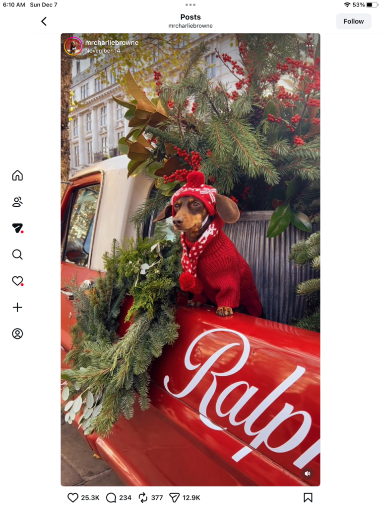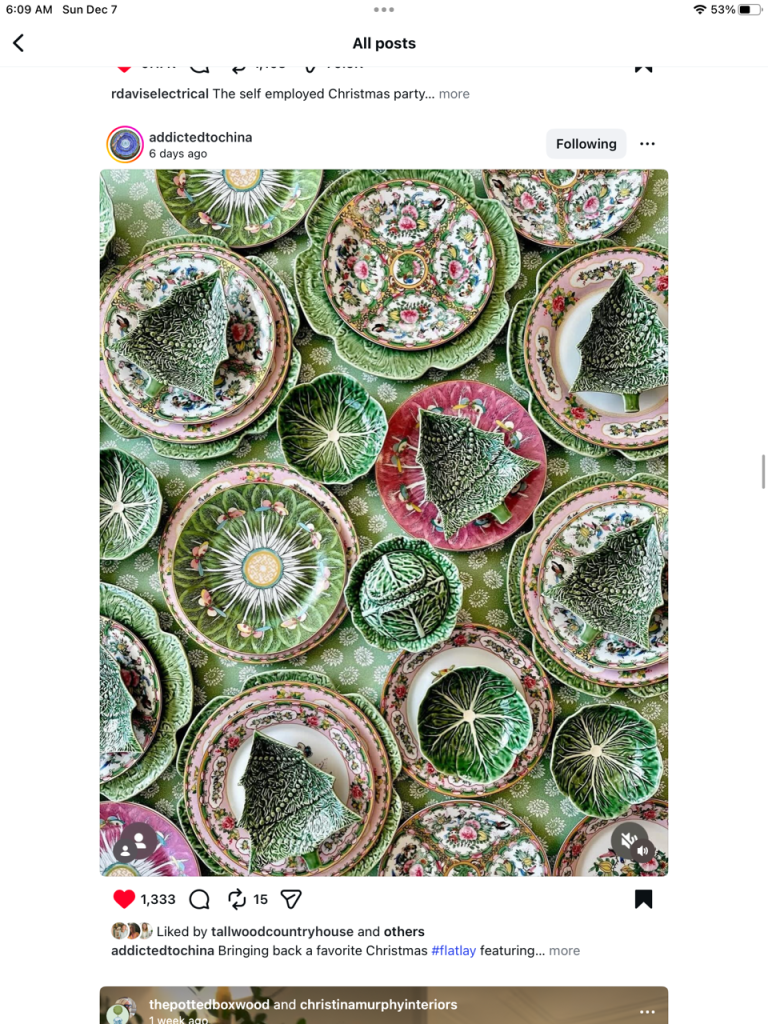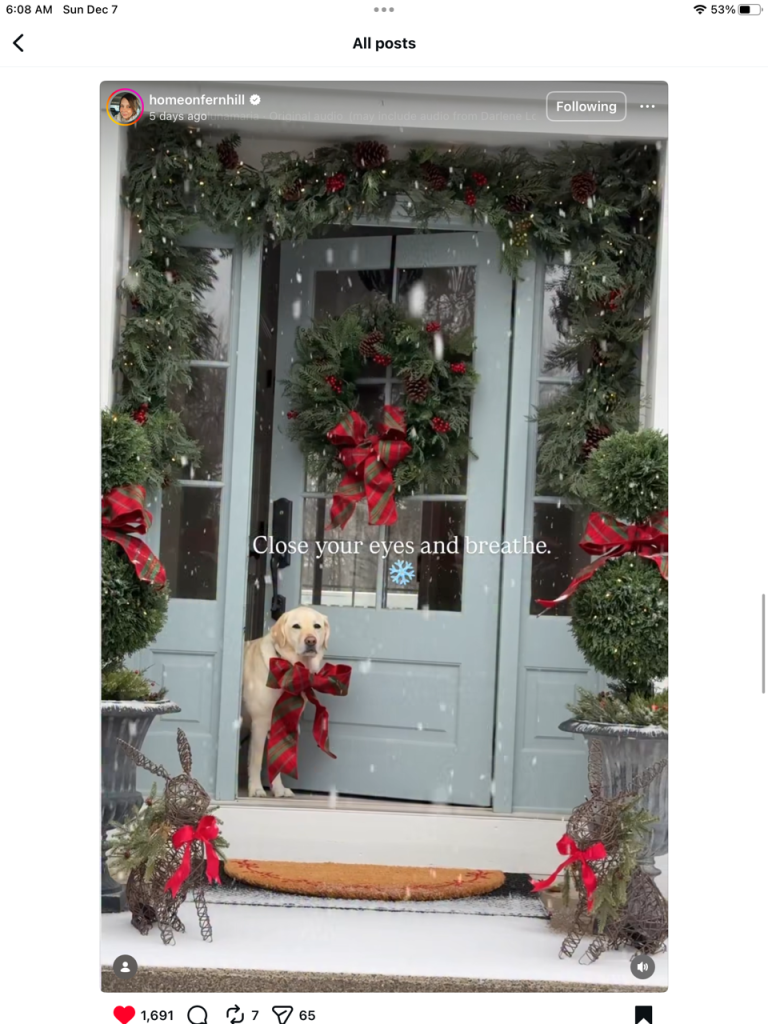 Today, I enjoyed your Instagram photos, especially the one with the dachshund in the red truck and Piper all decked out her holiday finery! The Homeworthy tour of Cheekwood Gardens in Nashville, Tennessee was so interesting and the trees were so beautiful! That certainly represented a lot of hard work by the designer.