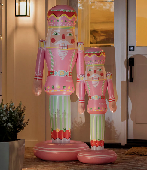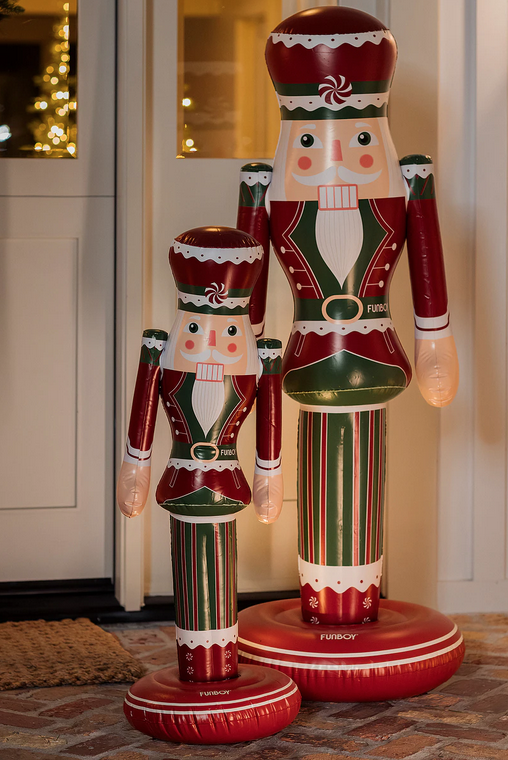 6 ADORABLE INFLATABLE LARGE NUTCRACKERS What a fabulous idea! If I lived somewhere warm, I would buy these for the poo (they have a weighted bottom), how cute! However they are equally wonderful for the front door or elsewhere, that you want a little holiday cheer.Plus so reasonable, two sizes. Really fun! Click here
