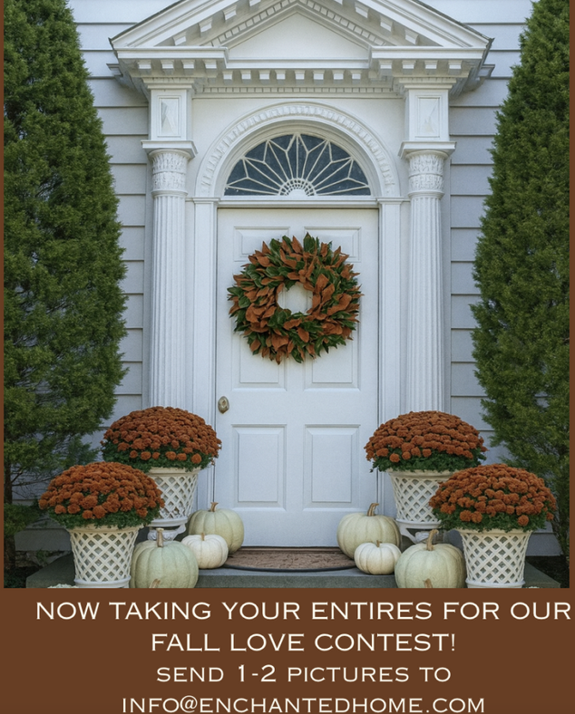 Don’t forget to send in your fall themed pictures! We have room for 12 more and our contest will start next week. The winner will win a wonderful box of Enchanted Home goodies! Send in your 1-2 fall related pictures to info@enchantedhome.com.