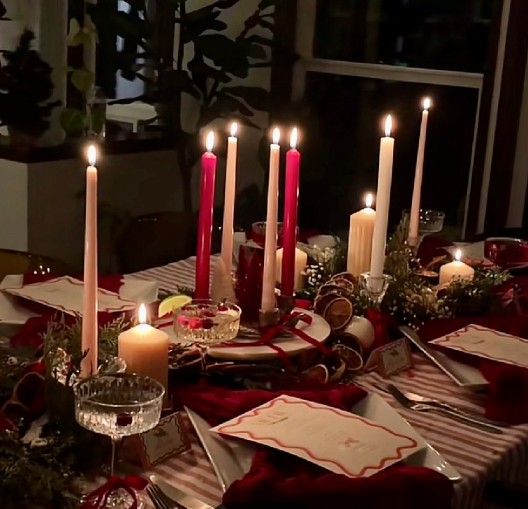 Went to a lovely holiday party for girlfriends, the mood was so pretty and merry, loved all the colored candles