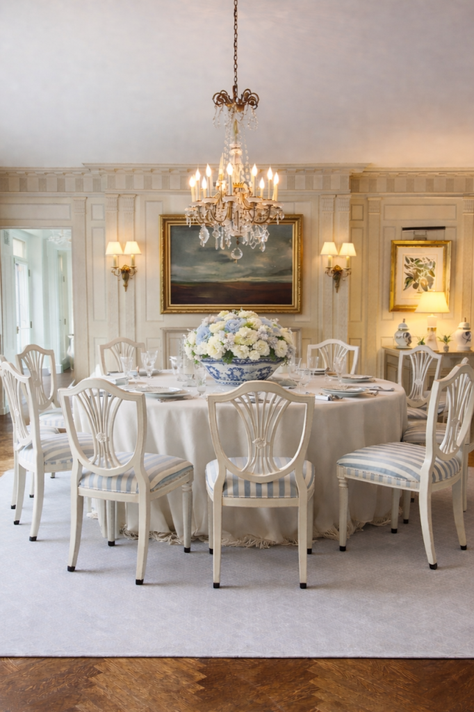 If you can not find the Gustaian Chairs you could also use the French Ballon chairs or Classic Shield Back Chairs sprayed in Ivory or White Antiqued with a Brownish mixed with Ivory Glaze… I know why you want those chairs they are simply gorgeous…They make the room….Just beautiful…