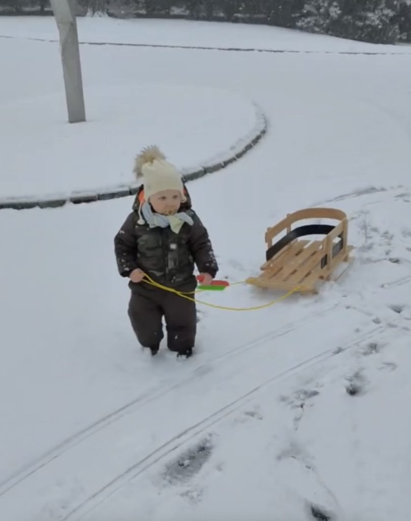 Wintry weather won’t keep this little snowman and his sled away! (yes I asked immediately where the heck are his gloves- they said he kept taking them off so they went inside)