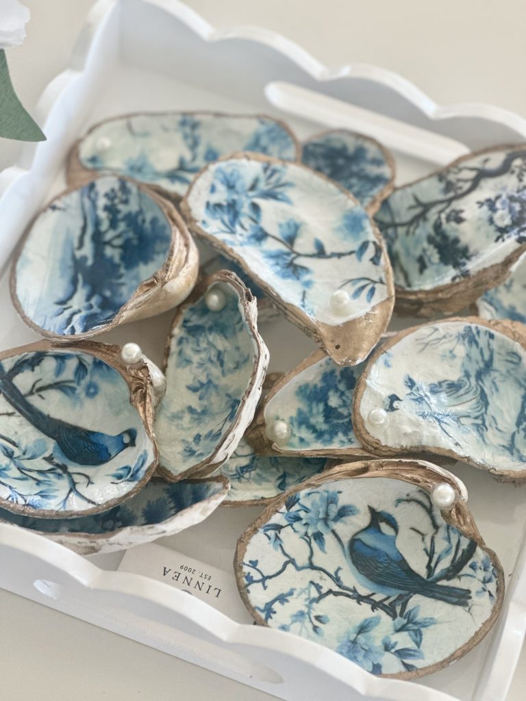 Two beautiful gifts given to me by visiting friends, the painted oyster shells above and the gorgeous watercolors below