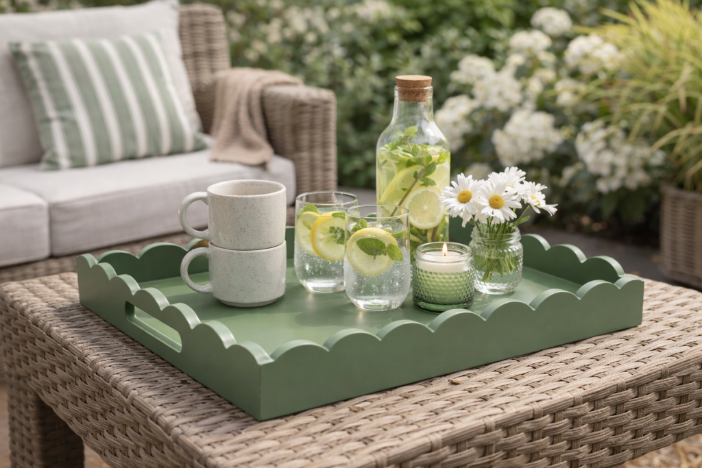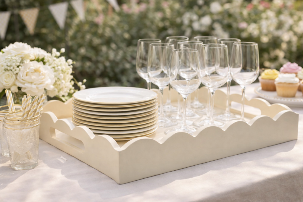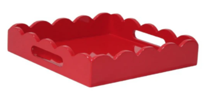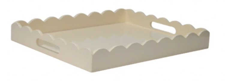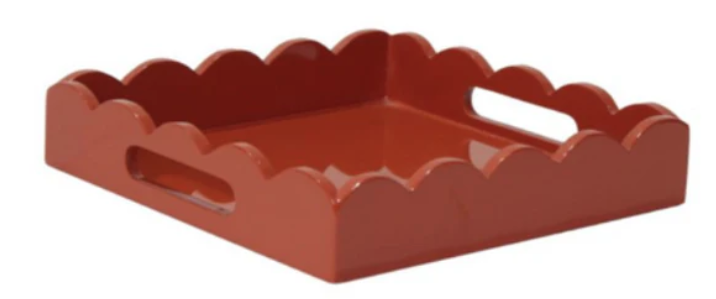 ITEM 14 LACQUERED SCALLOPED TRAYS We are closing out of these fabulous lacquered trays. And these are, like the shades, an absolute STEAL! If you know the prices of these, you. know they can sell for hundreds. Lacquered trays are so chic and look great in every style interior!