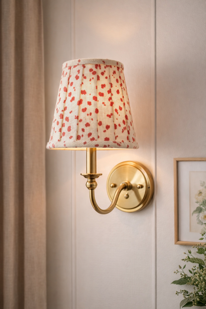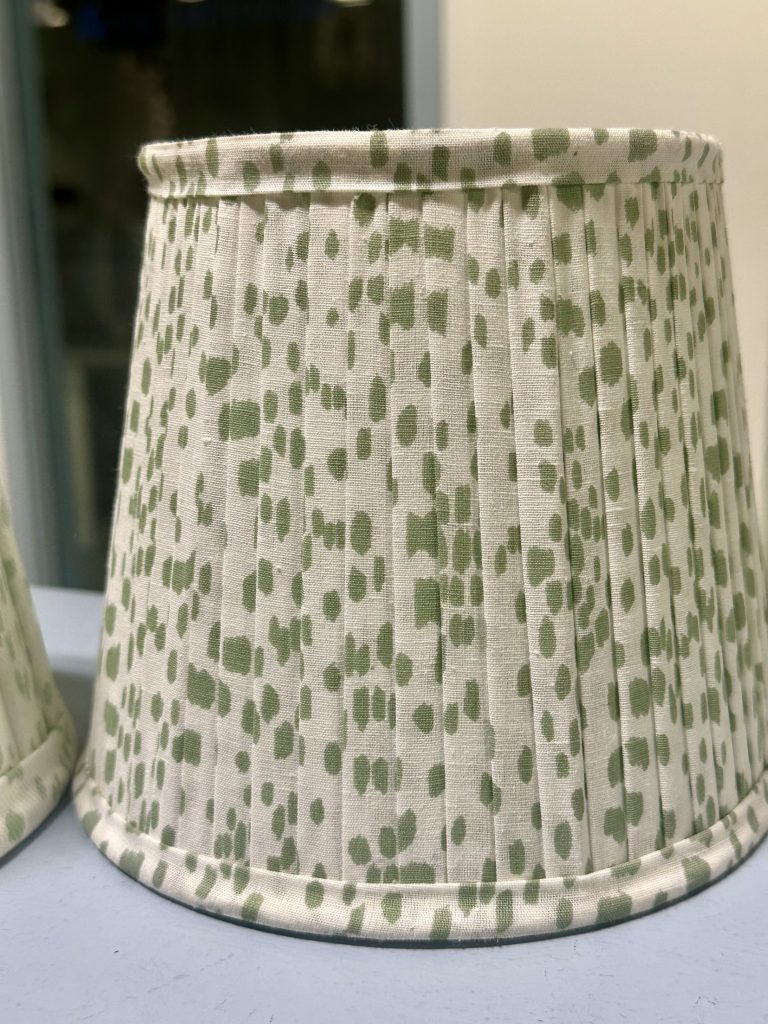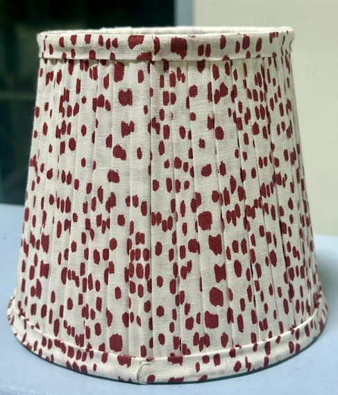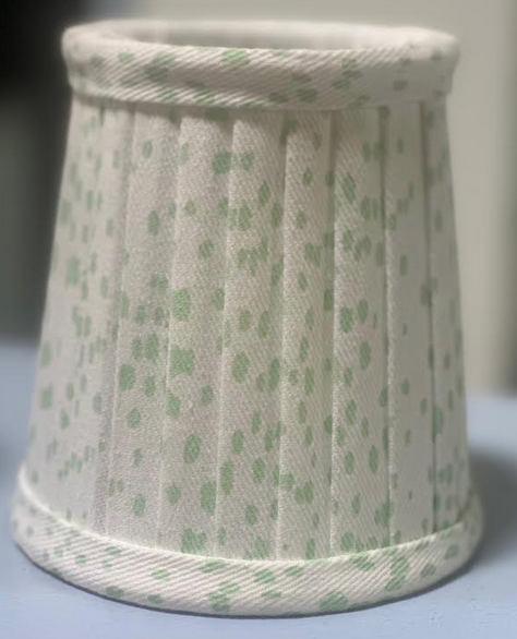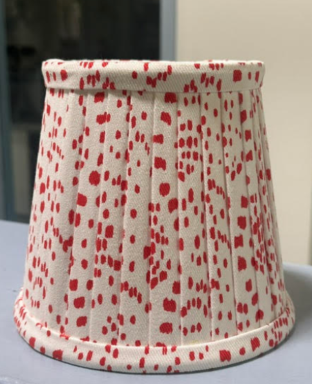 ITEM 5 The smaller clip on shade in our popular dot fabric. Offered in a dusty red, soft blue and we have three shades of green.
