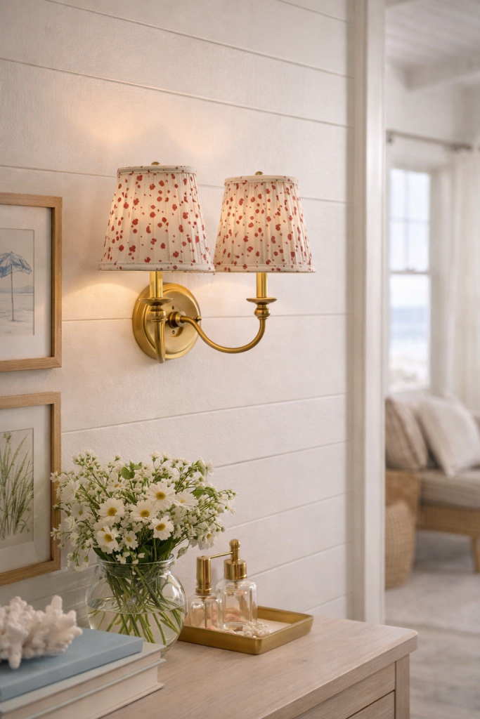 ITEM 7 Love this pretty floral pattern in the smaller sconce shade, a soft pretty blue.