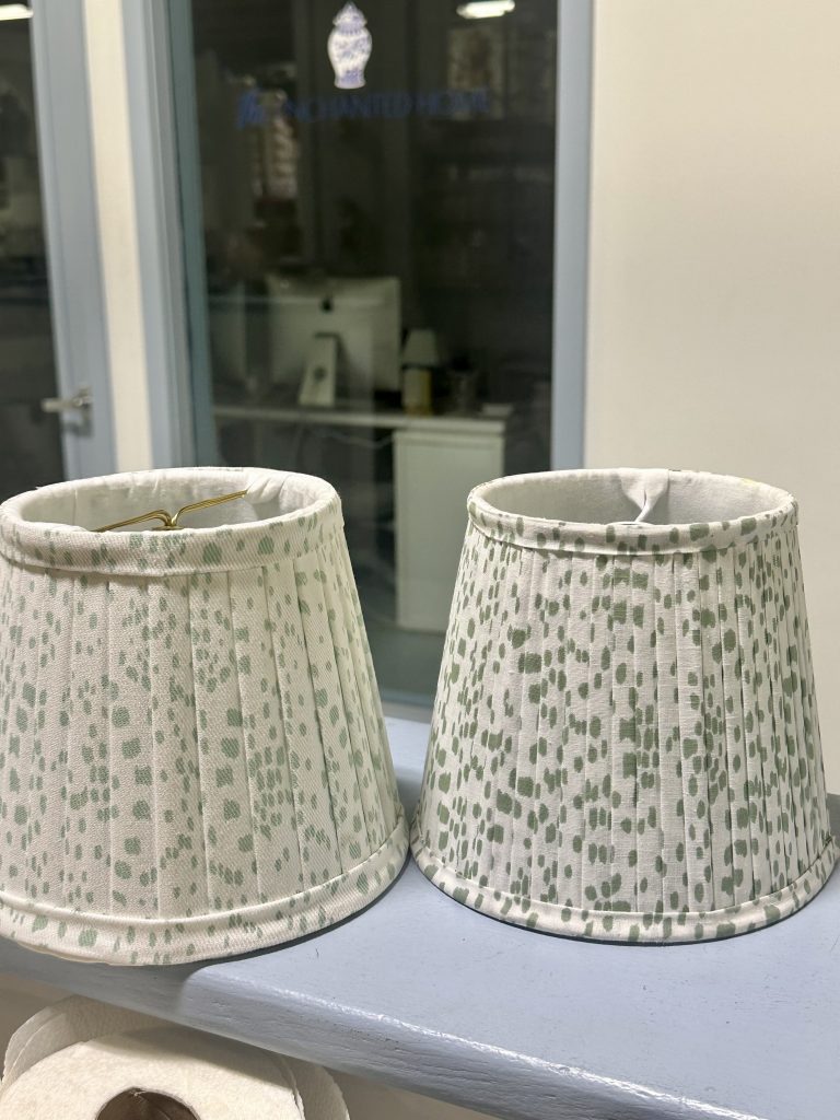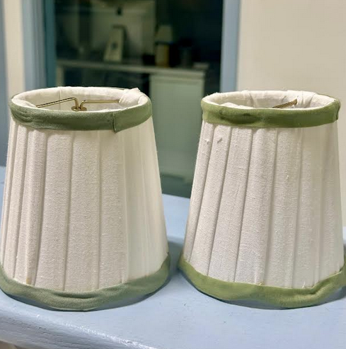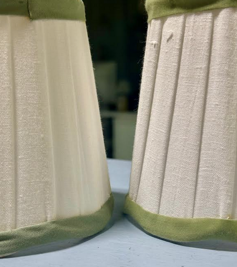 ITEM 13 One left of each of the smaller sconce shade. The green trim is slight different, its subtle but we pictured them side by side for you to see.If they were used on sconces, don’t think you would would ever notice.