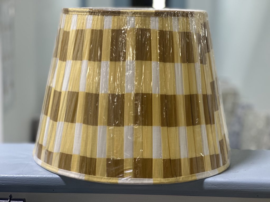 ITEM 13 LAMPSHADES Down to a handful of these cotton pleated shades. If you know prices of these you know these are a steal! These have a traditional spider style where you use this with a built then harp and finial