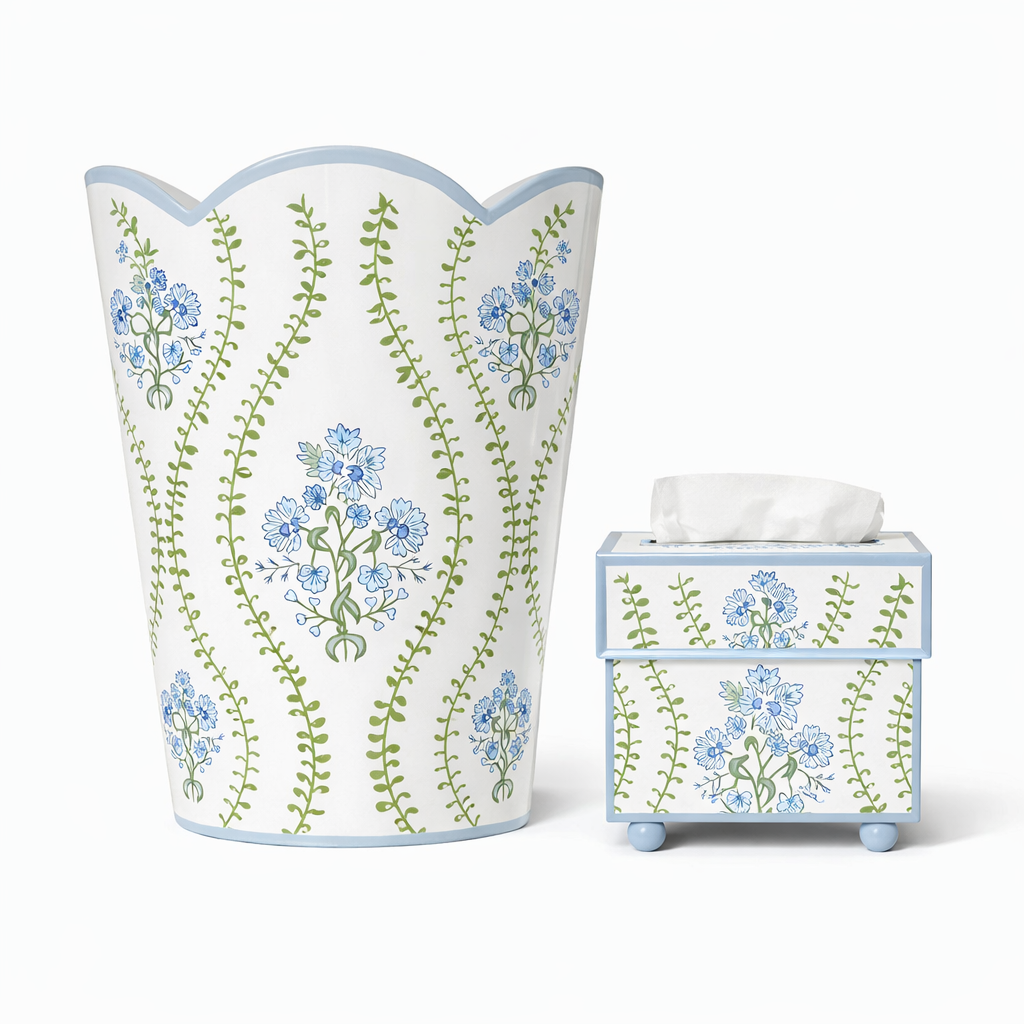 ITEM 2 Our beautiful best selling tulip style wastepaper basket and tissue offered in three gorgeous new patterns!