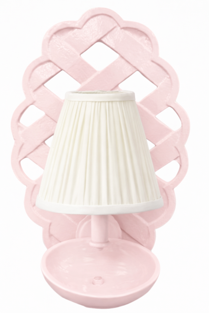 ITEM 9 Our incredible scalloped lattice sconces are coming back in 5 new colors!! These are not shown with their electrical pole/socket as they had just come out of production. The first picture shows the completed product. These are really special!