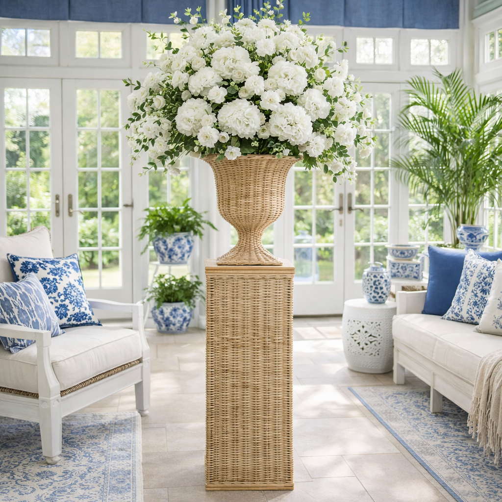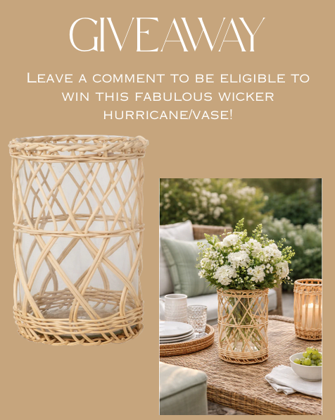 Love all your items , you are so creative, love your taste in wallpapers, furniture, wicker, would us your wicker vase in my homes , on my tables when we have dinner parties or just alone on my coffee table and on covered area in our back yard