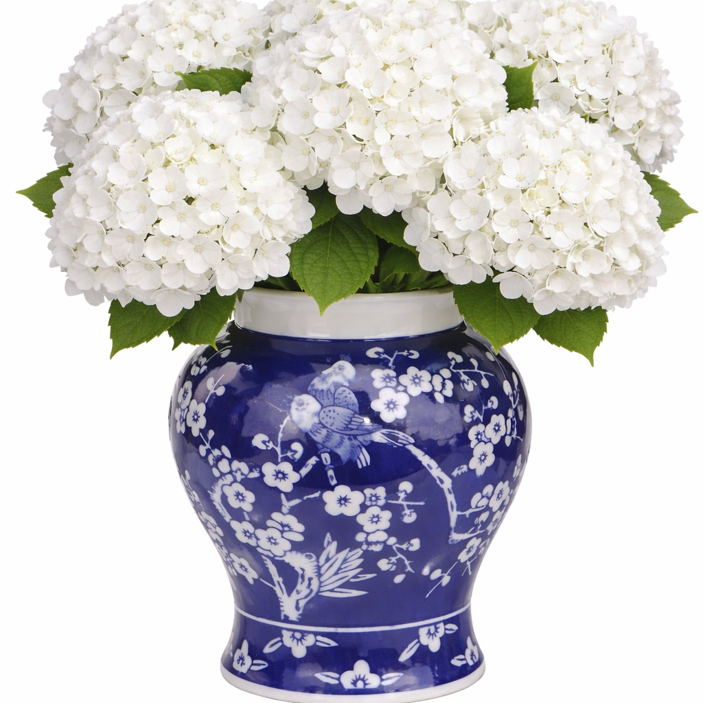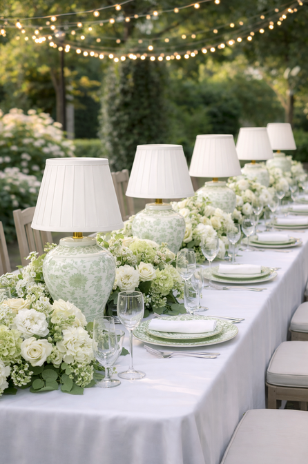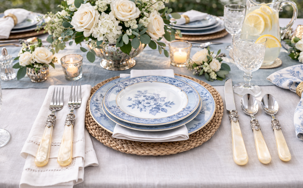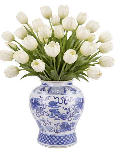 The floral bouquets in the ginger jars are a must. Classic in every way and versatile for any table.