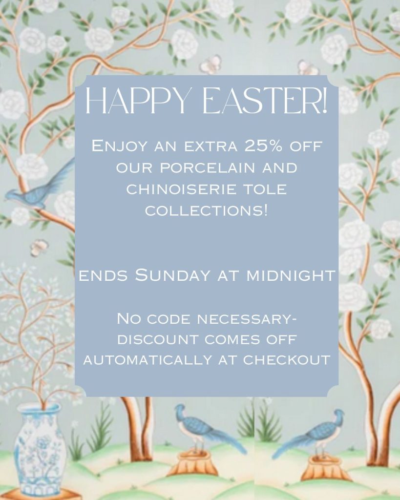 TODAY ONLY! 25% OFF ALL PORCELAINS AND ALL CHINOISERIE TOLE