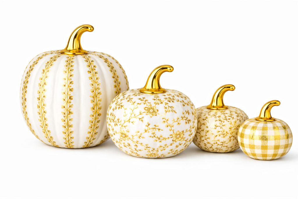 I’ve never been a pumpkin fan other than using real pumpkins, but these gold pumpkins changed all that. Love all of them and they would be so versatile to use.