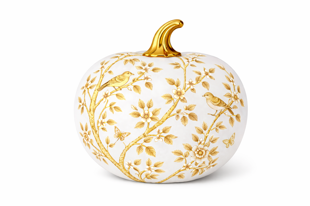 2 PUMPKINS On Friday I shared with you, some of the most exciting beautiful pumpkins we have ever created (click here if you missed the post, you won’t want to miss it)! One collection that was not ready yet was the gold/white so I would love to hear your take on the idea of these gold pumpkins too! I happen to love these, think they really elevate the idea of decorating with pumpkins!