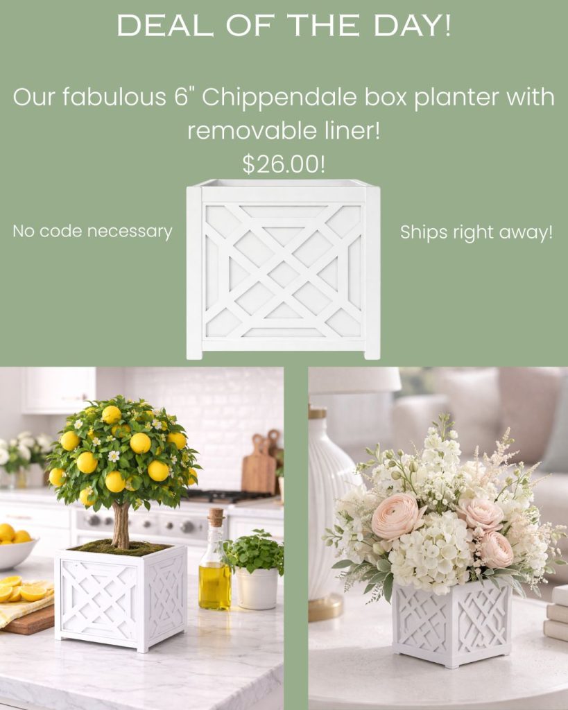 AND OUR DEAL OF THE DAY IS A MUST HAVE! OUR BEAUTIFUL 8″ BOX PLANTER WITH REMOVABLE LINING. CLICK HERE (ENDS TONIGHT)