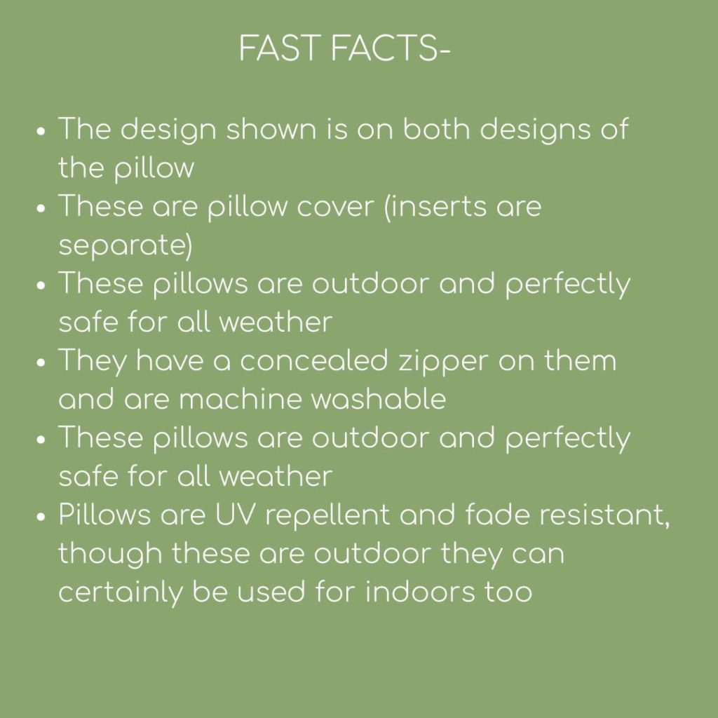 Pillows are UV repellent and fade resistant, though these are outdoor they can certainly be used for indoors too