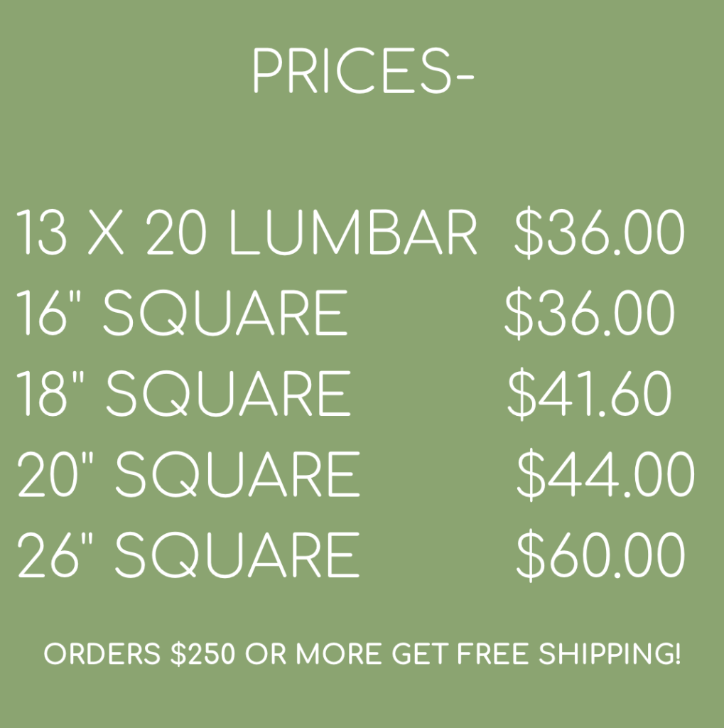 If emailing your order- you must include your name, address, phone number, pillow number, what size and how many