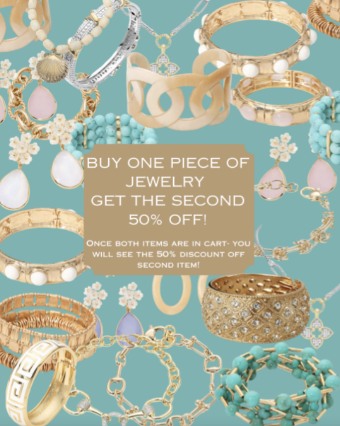 5 OUR FUN JEWELRY COLLECTION- BUY ONE GET ONE 50% OFF! This great sale on the jewelry collection ends tomorrow night. We have added some beautiful new pieces and restocked others. These are good looking, well priced and no fuss. Pairs well with the good stuff! Click here to see the collection.